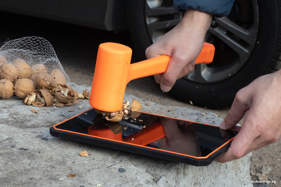 Blackview Active 8 Pro — это действительно защищенный планшет. До того, как мы подвергли его «официальным» испытаниям, он регулярно падал на пол под разными углами и на разные поверхности. Ведь чаще смартфоны и планшеты выходят из строя не потому, что по ним ездят машины, а потому, что их роняют и топят. Тестовый же образец показал, что без последствий выдерживает падение с семи-восьми метров. Также им можно колоть орехи и, не исключено, бетонные заборы. В конце процесса девайс стало даже жаль: крепкий ведь оказался.