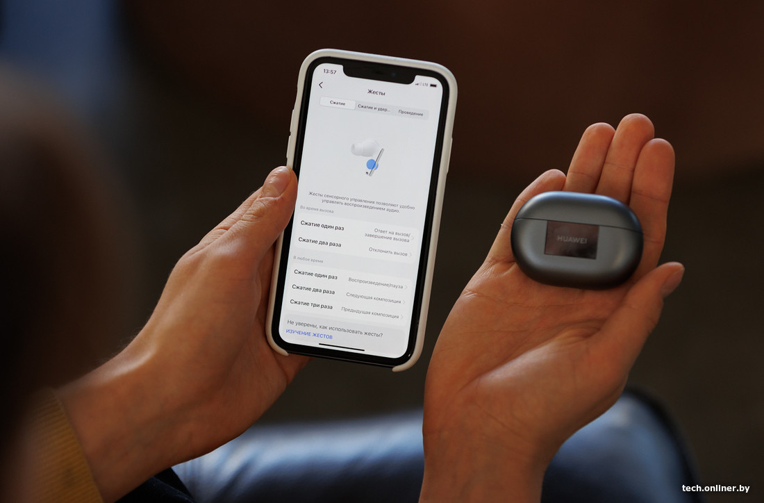 Из разряда дополнительных приятностей: у FreeBuds Pro 3 есть управление жестами. Раз нажали на ножку наушника — поставили трек на паузу. Два — перелистнули на следующую песню. Три — вернулись к предыдущей песне. А чтобы отрегулировать громкость, нужно легонько провести по микрофону вверх или вниз. Да, такое управление — не новинка. Но здесь оно удачно реализовано. Не нужно тыкать в наушники по сто раз, потому что все получается с первой попытки.