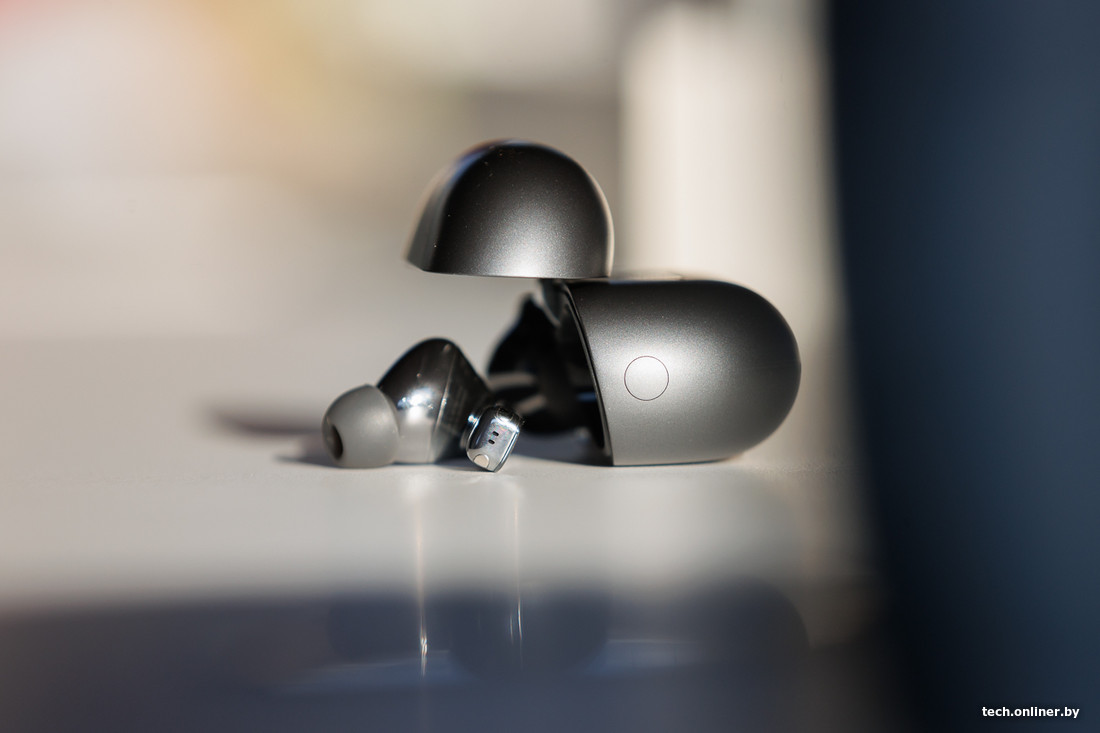 Но и реальные результаты не самые стыдные. Вне кейса, с активированным шумодавом наушники продержатся около четырех часов. Что до самого кейса, то его заряда хватит на полные сутки. С 0 до 100% наушники заряжаются в кейсе примерно за 40 минут, а тот — чуть больше, чем за час. Так что с автономностью здесь все окей — нужно еще постараться, чтобы остаться с полностью разряженными наушниками.