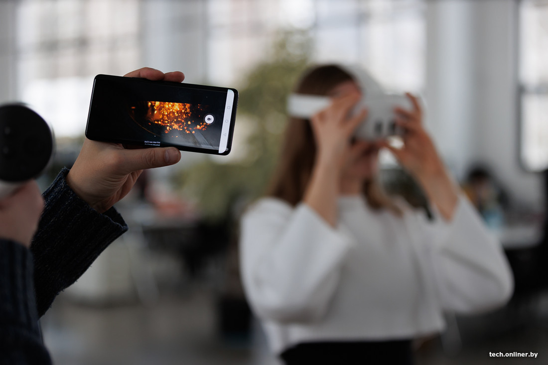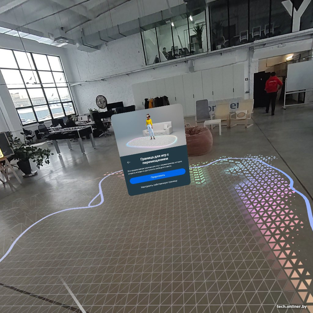 За работу отвечает чип Snapdragon XR2 Gen 2, ориентированный на VR-устройства. Среди его особенностей — возможность трансляции внешнего контента с задержкой 12 мс. Что это значит? Meta Quest 3 проецирует окружение на встроенные экраны: пользователь не становится «слепым», надев шлем. Человек видит как виртуальный интерфейс, так и внешнее окружение (в пикселизированном виде), но мир реальный — с тем самым незначительным лагом.