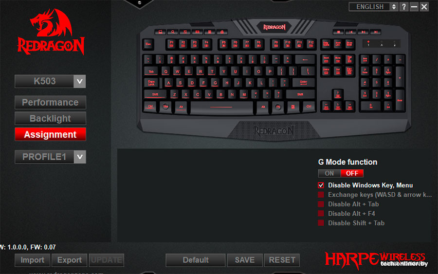Фирменное ПО предлагает базовый набор функций в виде настройки подсветки и отключения/переназначения очень ограниченного количества кнопок.