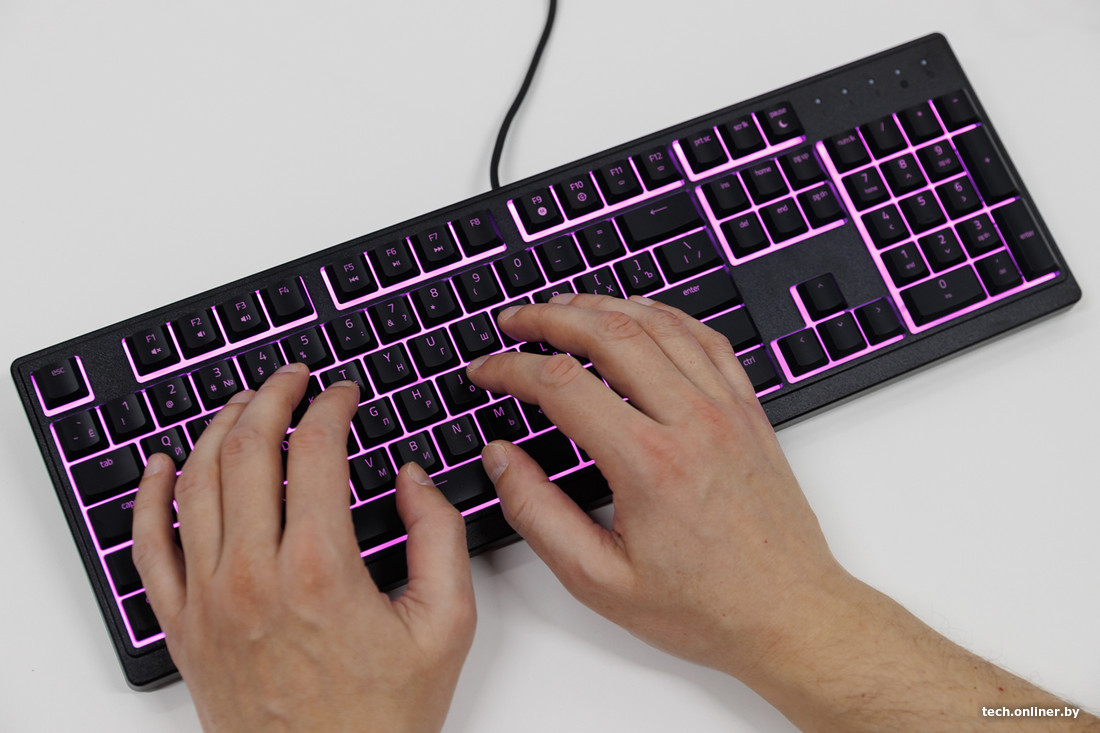 По этой причине работа с текстом на Razer Ornata V3 X комфортней, ошибок/опечаток значительно меньше. В качестве игрового инструмента клавиатура отвечает требованием, которые может выдвинуть геймер к такому устройству: отзывчивая, тихая, с четким срабатыванием, а каких-то очевидных минусов не проявилось. Низкий профиль клавиатуры запишем в плюсы.