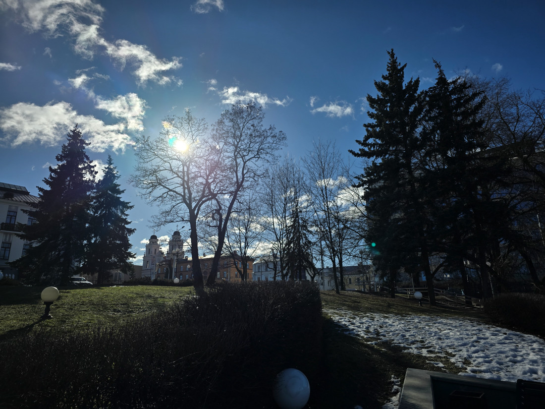 Солнце в кадре — это обычно беда. Чудовищные блики, деградация цвета, паразитные оттенки, потеря резкости, ужасные зайцы. Мы решили также добавить к этой картине мелкие детали — веточки не распустившихся пока деревьев. Раньше такие сцены лучше всех отрабатывал iPhone. Времена меняются. iPhone засветил голубым бликом кусты и пустил разноцветного зайца, Samsung устроил разноцветную мазню на небе. Honor, казалось, отработал хорошо, но очень странный оттенок храма не позволил ему стать победителем. А вот Huawei P60 Pro вышел молодцом — солнце с лучами, без бликов, а благодаря алгоритмам — много деталей по полю кадра.
