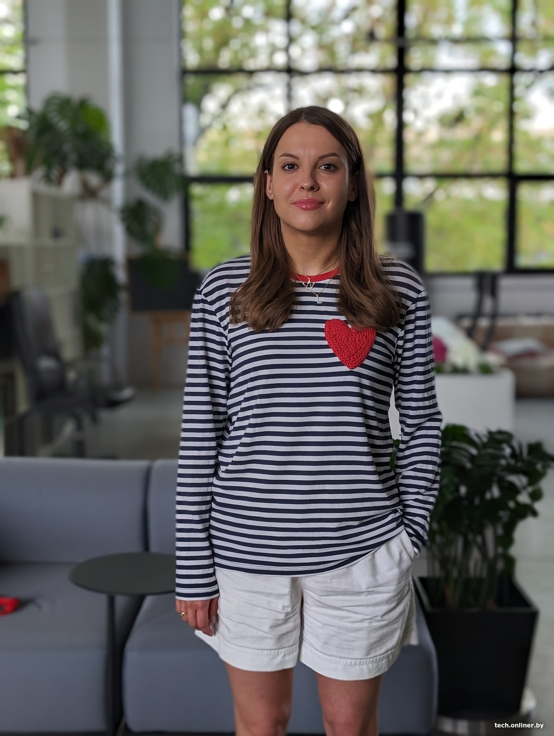 Как обычно, начинаем с портретных фотографий с нашей моделью Наташей. Все фото сняты через встроенные режимы съемки портретов, на 2-кратном увеличении и с базовыми настройками размытия фона.