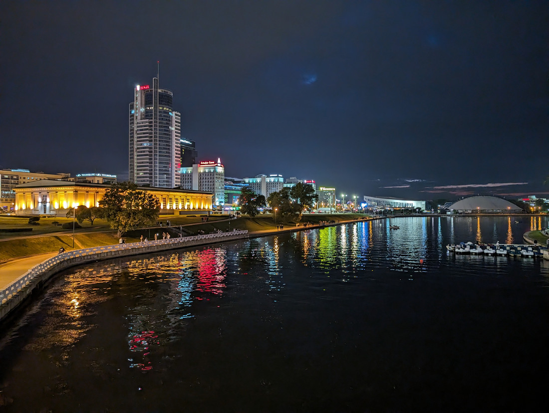 А вот тот же ночной режим съемки на Немиге дал другие результаты: Huawei, Xiaomi и Honor уловили баланс между сочным цветом и резкостью. Довольно объемная картинка получилась у Google Pixel 8 Pro.