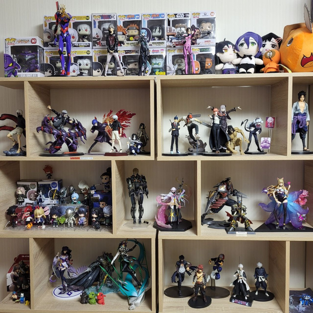 В коллекции если фигурки-прайзы, «комплитки», экшен-фигурки, нендроиды и Funko POP!. Есть как фигурки от Good Smile Company, Bandai, Sega и Apex, так и чистокровные китайцы без лицензии.