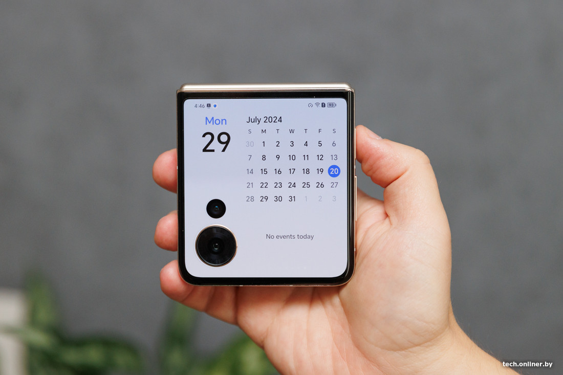 С «главной фишки» и начнем. Потому что внешний дисплей здесь по меркам таких телефонов действительно тянет на рекорд. Его диагональ составляет 4 дюйма, которыми уже вполне комфортно можно пользоваться. В недавно рассмотренном нами Galaxy Z Flip6, напомним, диагональ внешнего экрана составляет 3,4 дюйма.