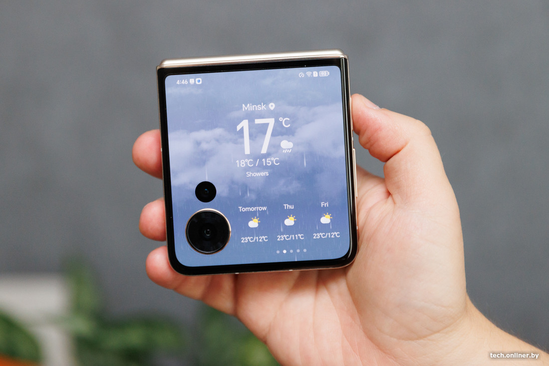 Преимуществом модели на фоне конкурентов можно назвать емкую батарею. Редко какую «раскладушку» могут осчастливить аккумулятором на 4000 мАч, а здесь у нас 4800 мАч. Такое не в каждом моноблоке встретишь, а тут раскладной форм-фактор. Так что одной зарядки спокойно хватает на двое суток работы смартфона. Уверены, если бы внешний экран сделать таким же функциональным, как основной, автономность могла быть еще выше, ведь большим внутренним дисплеем пользовались бы реже.