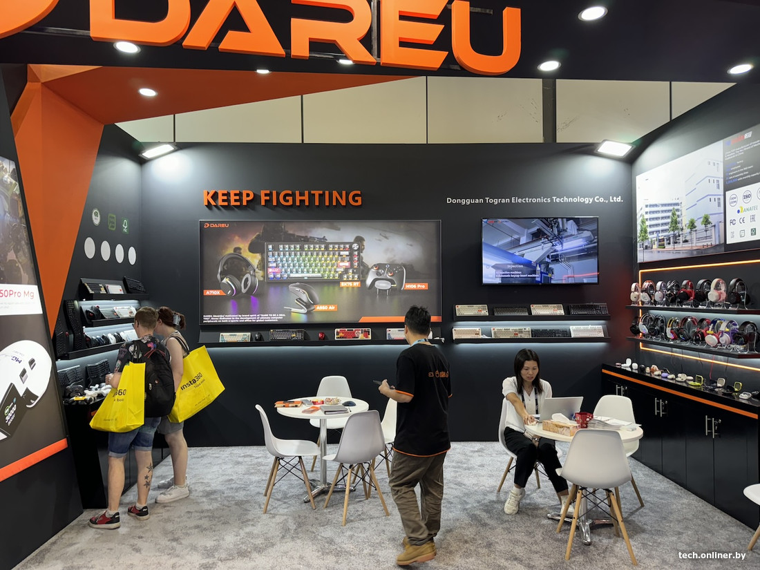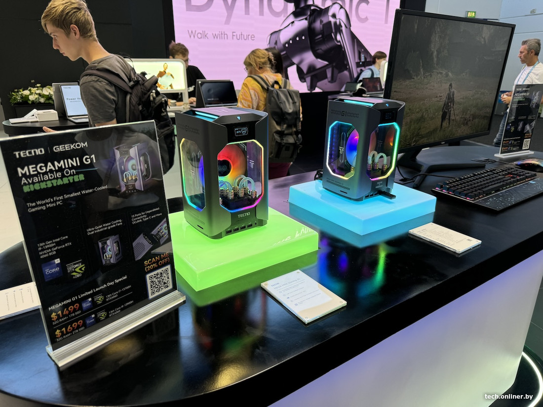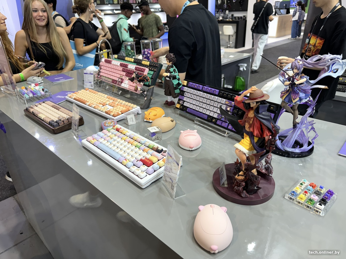 Рядом — компания, предлагающая игровую периферию с фигурками героев аниме и комиксов. Tecno показывала мощные мини-ПК с системами водяного охлаждения, рядом — небольшая инсталляция от PlayStation с покоряющим чарты astro Bot.