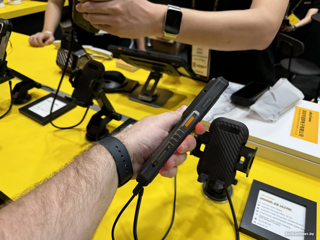 Наконец, Ulefone продемонстрировала флагманский аппарат под названием Armor 28 Ultra. Смартфон защищен по стандарту IP69K, выдерживает падения с высоты до двух метров, серьезные перепады температуры (от –30 до +55), а еще оснащается батарейкой на внушительные 10 600 мА·ч.