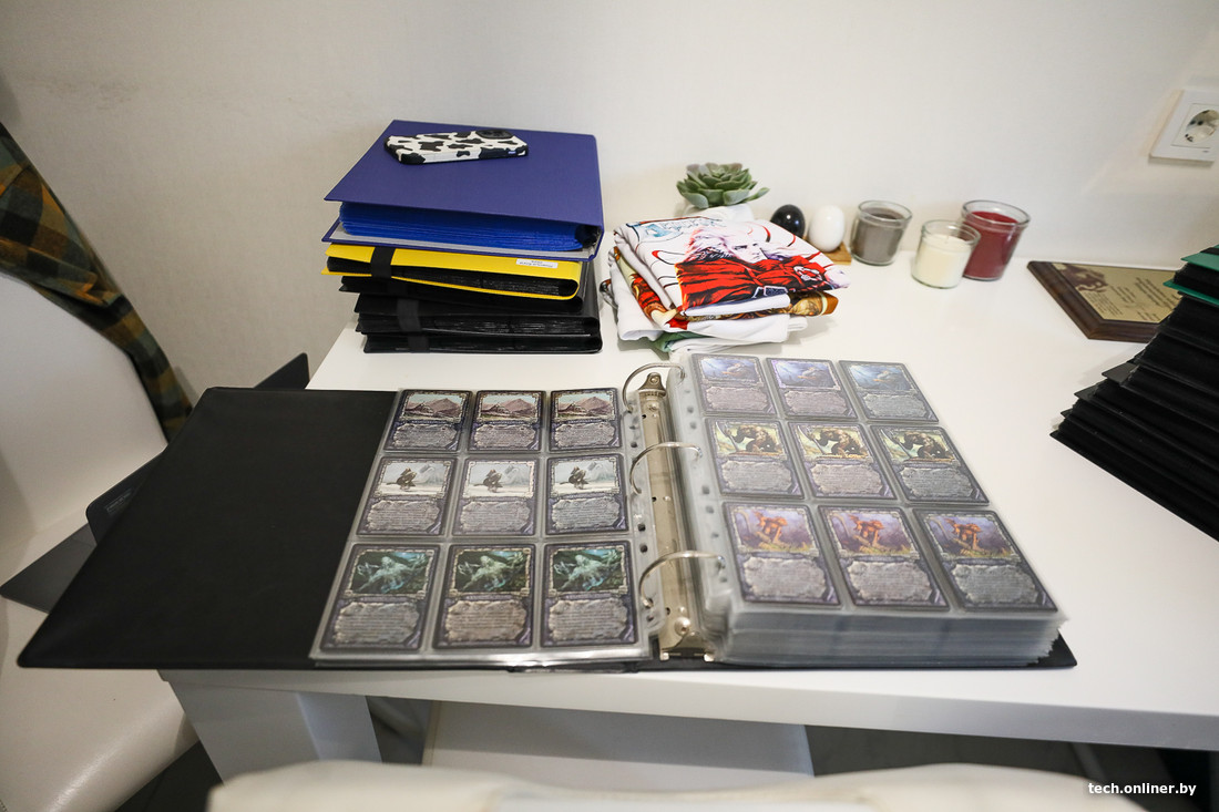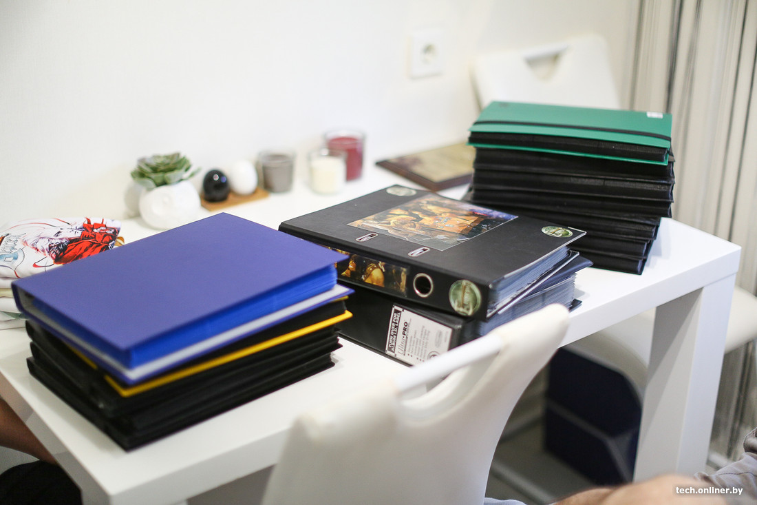 Папки с коллекцией Дмитрия занимают весь рабочий стол. По словам молодого человека, эти 14 альбомов, заполненные карточками, весят где-то 17—18 килограмм. Естественно, это не весь «Берсерк» в доме: например, в шкафу в прихожей ютятся целые коробки с картами из перезапущенной версии игры. В папки же попадают самые актуальные, ценные и памятные карты: