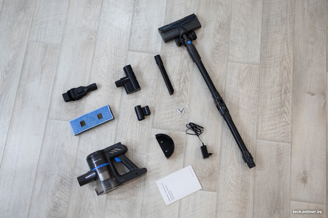Trouver Cordless Vacuum Cleaner J30 VJ12A имеет высокие показатели мощности (450 Вт) и силы всасывания (24 кПа). Емкости пылесборника (0,5 л) и аккумулятора (2500 мАч) хватит для уборки достаточно больших площадей. Но ключевая фишка этого пылесоса — комплектация: