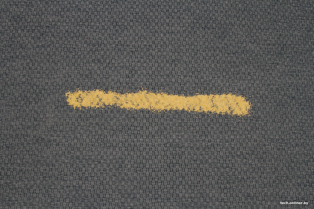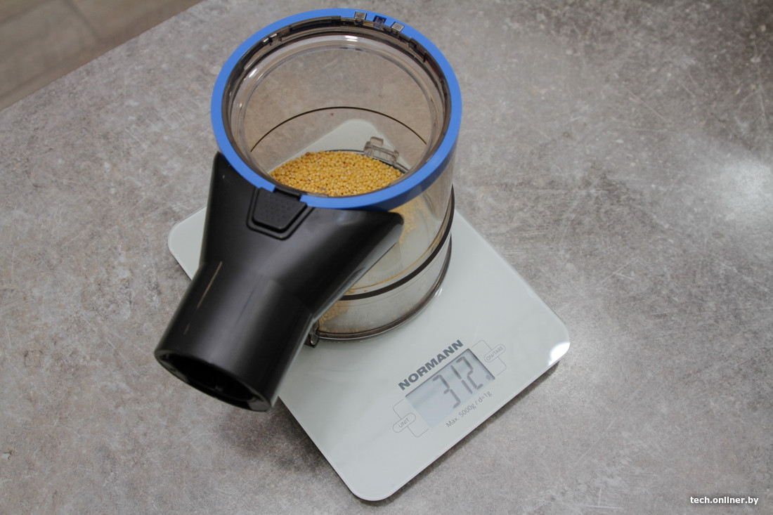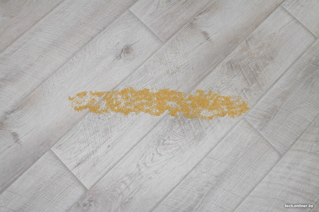 Следующим этапом тестирования Trouver J30 стала проверка силы всасывания. Для этого мы рассыпали по 50 г крупы на ламинате и безворсовом ковре и попробовали убрать ее в 1 проход (вперед-назад) на максимальной мощности. На ламинате нам удалось собрать 49 г, хотя во время проведения теста казалось, что после прохода от крупы не осталось и следа. Спишем этот 1 грамм на погрешность измерений и небольшой эффект разбрасывания крупы от вращения электрощетки. На ковре мы зафиксировали показания 50 г, в процессе уборки было отчетливо видно, что часть крупы электрощетка собрала на обратном пути.