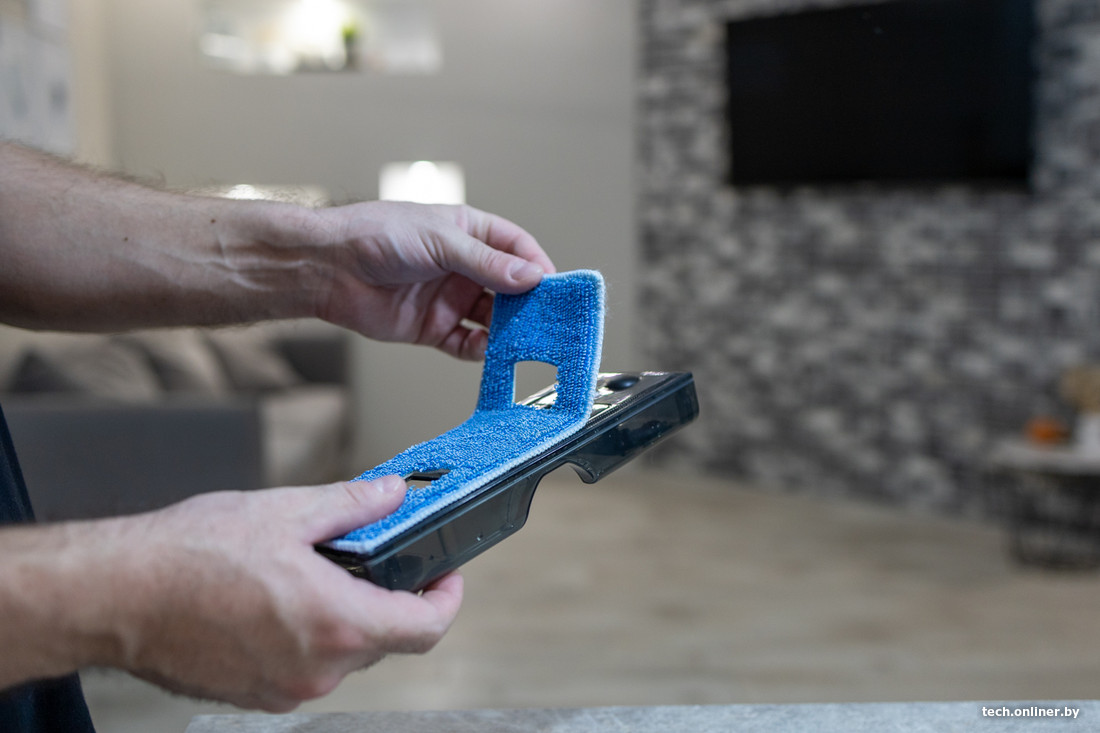 При тестировании насадки для влажной уборки попробовали отмыть пятно от кофе, разлитого почти сутки назад. Чтобы его победить, нам потребовалось 2 прохода. Для свежих пятен будет достаточно и одного прохода, но в случае со стойким кофейным пятном его оказалось мало. При этом сказать, что пол остался совершенно чистым, невозможно, некоторый эффект размазанного пятна все-таки остался — но чудес не бывает, любая классическая швабра показала бы аналогичный результат. Вряд ли эта насадка — удачный вариант для борьбы с серьезными загрязнениями, но при этом, выполняя обычную уборку квартиры пылесосом, вы можете получить неплохой бонус в виде легкой влажной уборки. Особенно учитывая, что для этого от пользователя не требуется никаких дополнительных действий, кроме как заполнить контейнер водой и установить на пылесос.