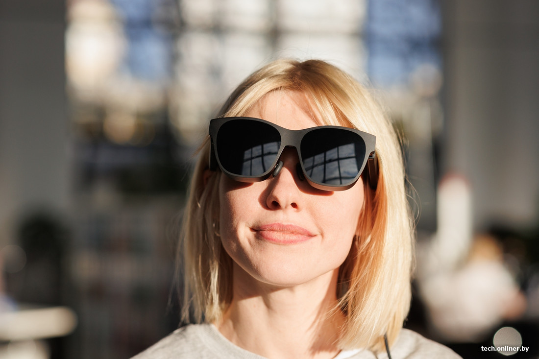 Девайс поставляется в красивой коробке с чехлом-пилюлей внутри, на самих очках есть дополнительная легко снимаемая накладка, с которой Xreal Air 2 напоминают аксессуар от RayBan. Накладка почти полностью блокирует свет, что удобно при просмотре кино (но и электрохромные стекла делают свое дело), когда вокруг ярко.
