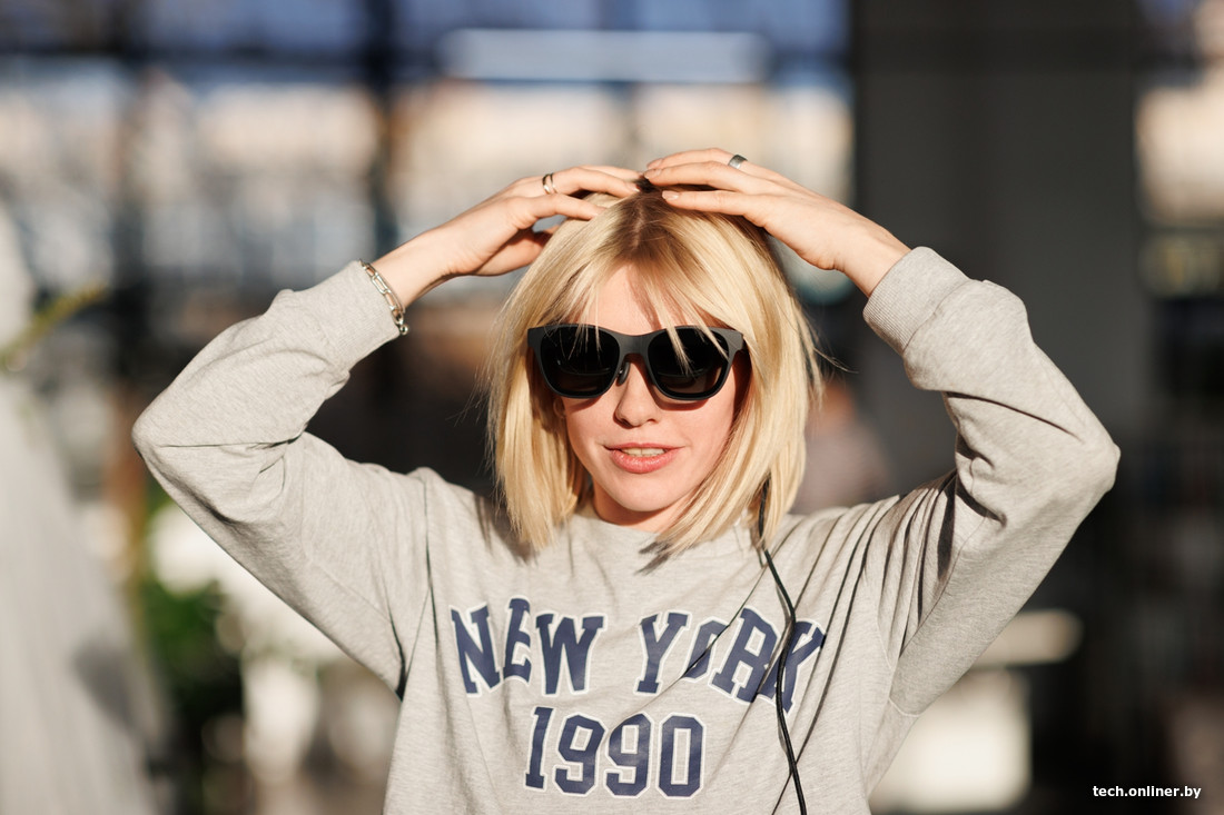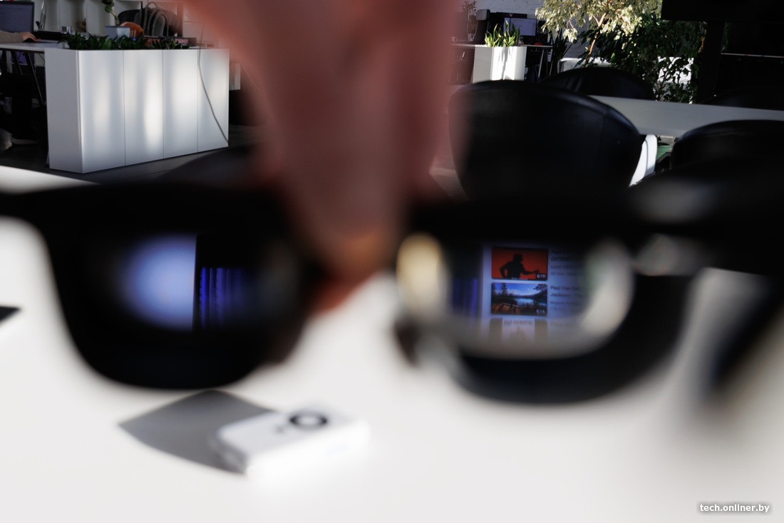 Сборка плотная, аккуратная, к качеству материалов вопросов нет. Из нюансов: при резких движениях (например, вы поправляете очки или легко ударяете по ним, задевая) картинка немного дергается. То ли это работа амортизирующих подвесов, обеспечивающих определенную свободу движений камер или линз, то ли иная особенность конструкции, мы не знаем, да и в распоряжении у нас был тестовый образец.