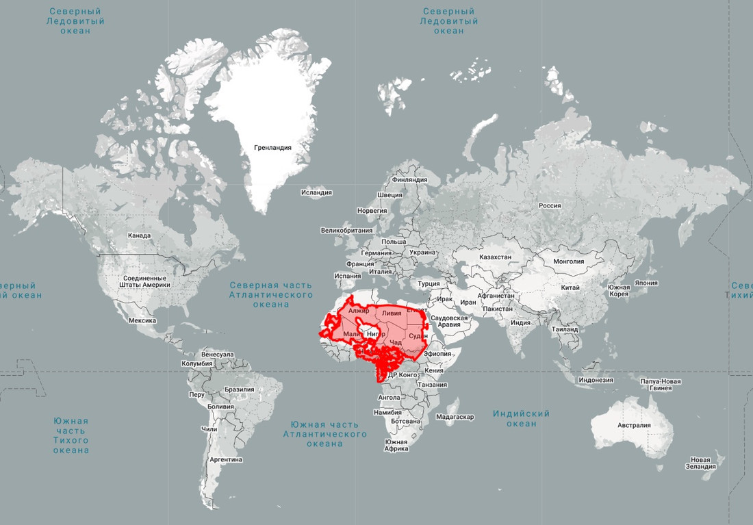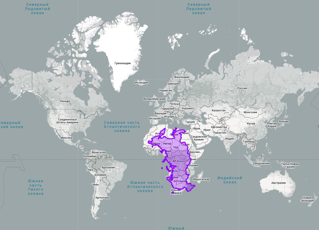 Африка вообще очень крупная: территория континента больше, чем площадь всей Европы, США и Китая вместе взятых.