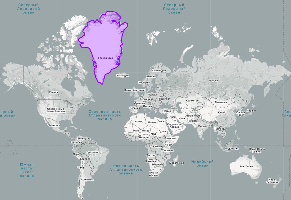 Самый большой остров на земле — Гренландия. Это еще одно базовое знание из школьного курса по географии. Смотря на карту, ни минуты в этом не сомневаешься. Действительно, чрезвычайно огромный остров, покрытый снегом. Масштабы тоже удобно сравнить с Африкой, ведь на привычных для всех картах размеры острова и континента сопоставимы, а на некоторых Гренландия и вовсе выглядит крупнее.