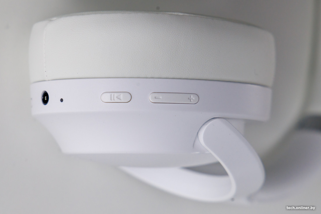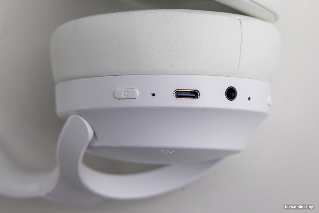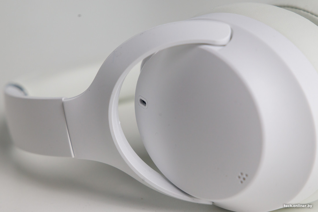 Все элементы управления и разъемы размещены на правом наушнике: качелька громкости, многофункциональная кнопка (пауза/воспроизведение, принять/отклонить звонок, сопряжение, включение, вызов голосового помощника, сброс), индикатор активности, 3,5-мм разъем и Type-C, микрофон и отдельная клавиша для включения и выключения басов (кратковременное нажатие) и активации игрового режима (длительное нажатие). Также на чашках есть отверстия для доступа воздуха и по микрофону для ENC — системы шумоподавления при разговоре.