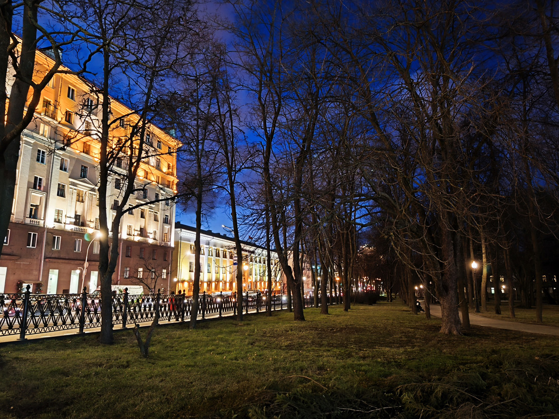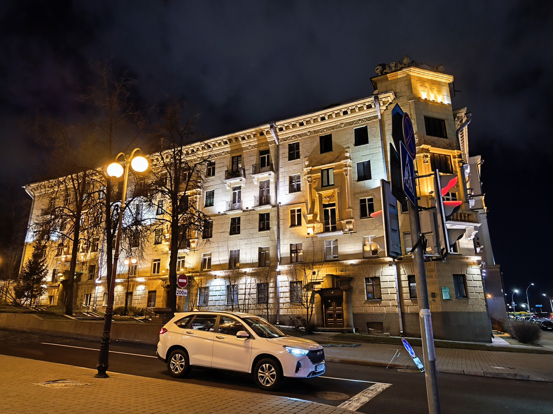 Общие впечатления: детализация, особенно днем, высокая, цвета приятные и естественные, динамический диапазон вопросов не вызывает. Ночные снимки, ожидаемо, после спуска виртуального «затвора» обрабатываются дольше. Но эффект ощущается: шума относительно немного (взгляните на ветки деревьев), тени не пересвечены, детализация хоть и не идеальная (видно по к тем же веткам), но достаточная.