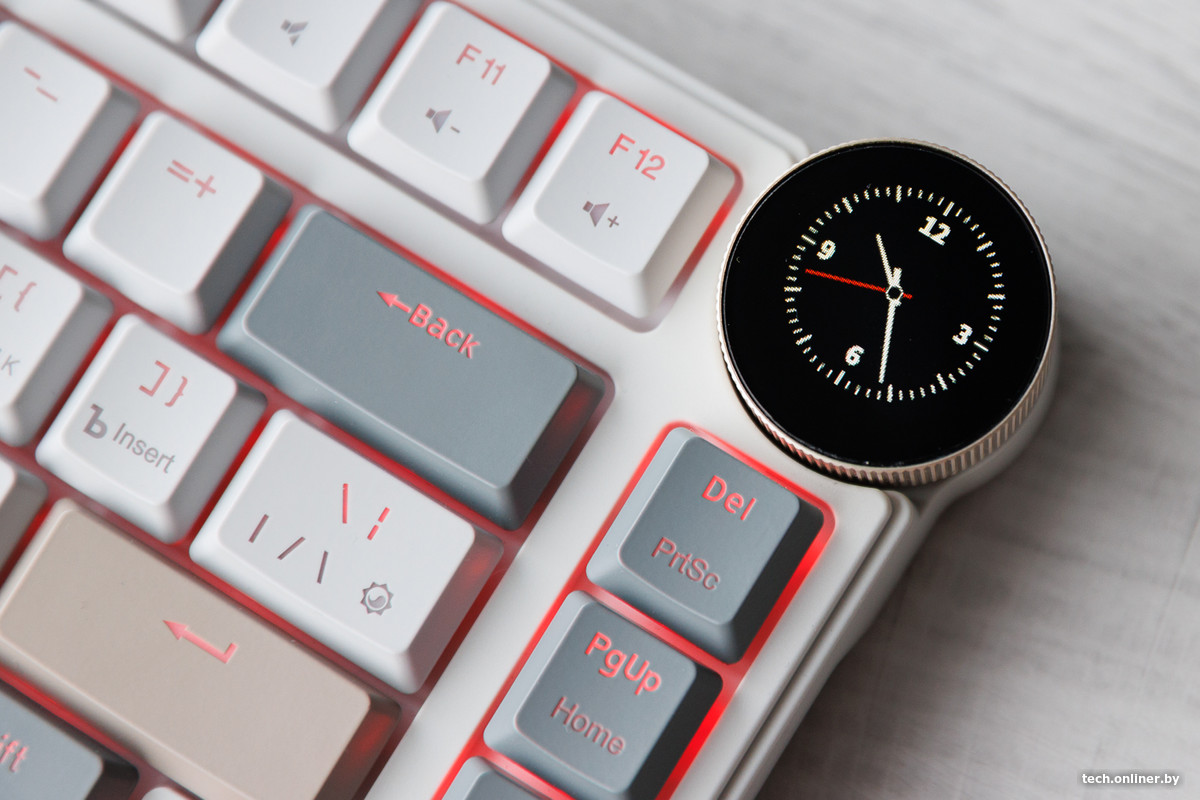 Он отметил приятный звук клавиш. Из того, что привлекло внимание, — длинный ход кнопок (после ноутбука), но особых неудобств не почувствовал. Приятным бонусом стала та самая «крутилка» для управления функциями клавиатуры.