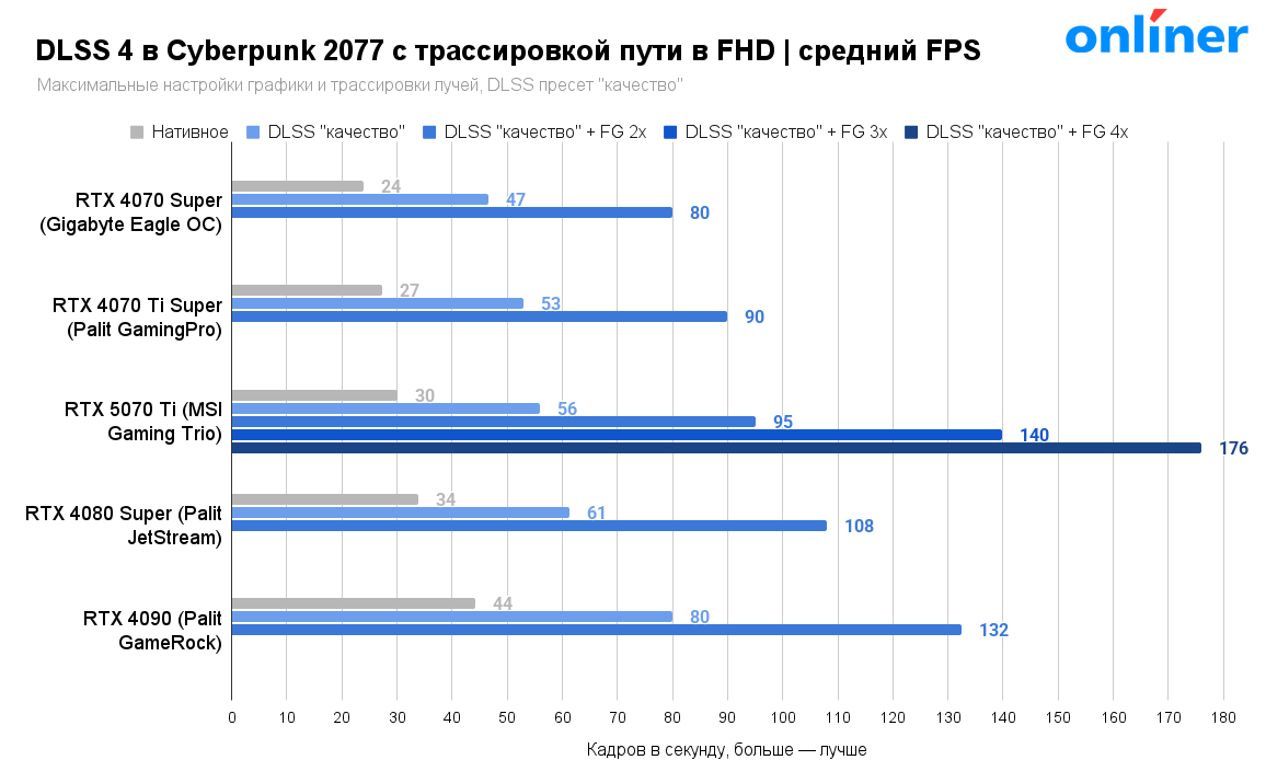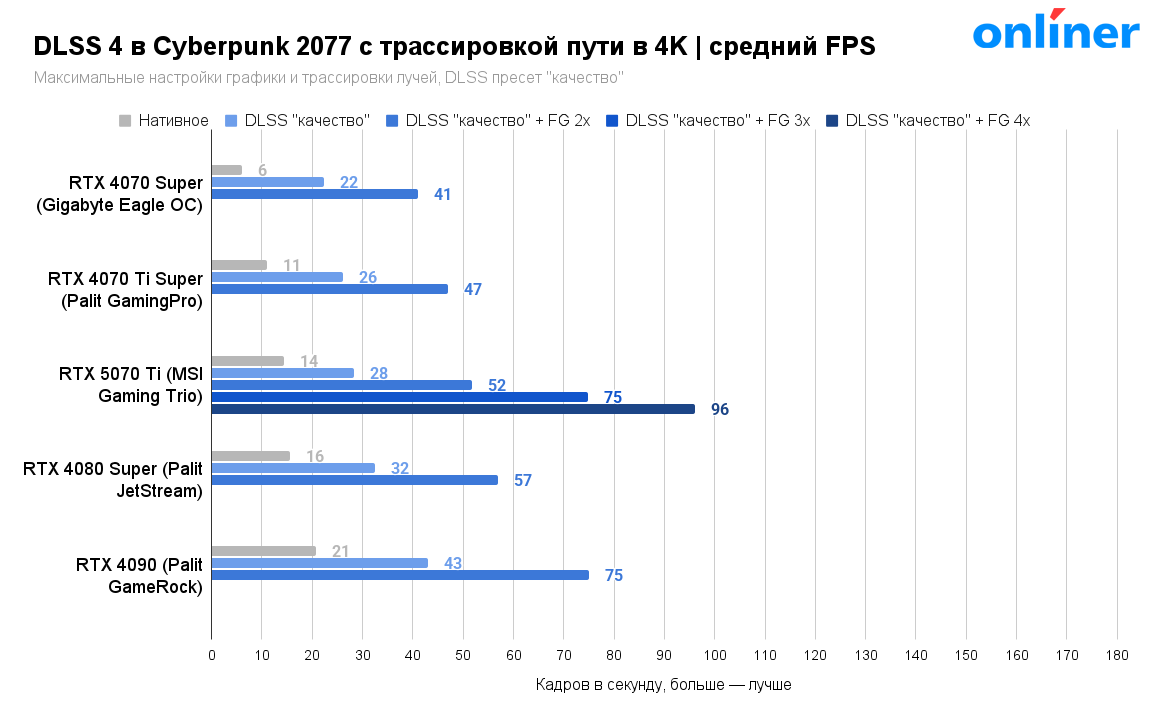 С тех пор прошло более четырех месяцев, и расстановка сил изменилась: на июль 2025 года RTX 5070 Ti подешевела до 3250 рублей, а минимальная цена на RTX 4070 Ti Super составляет 3170 рублей. Это меняет восприятие итогов. По сути они остаются актуальными, но требуют иной оценки.
