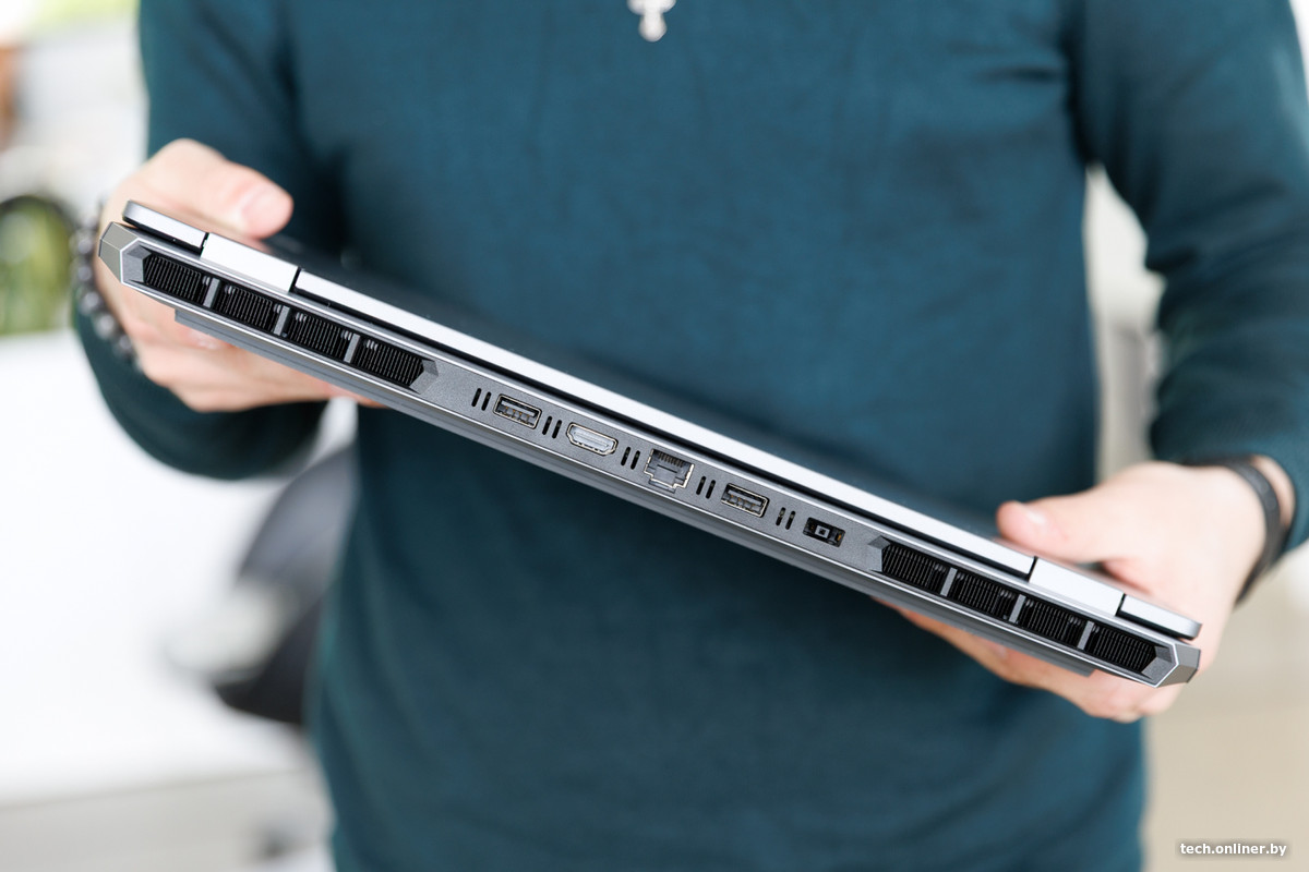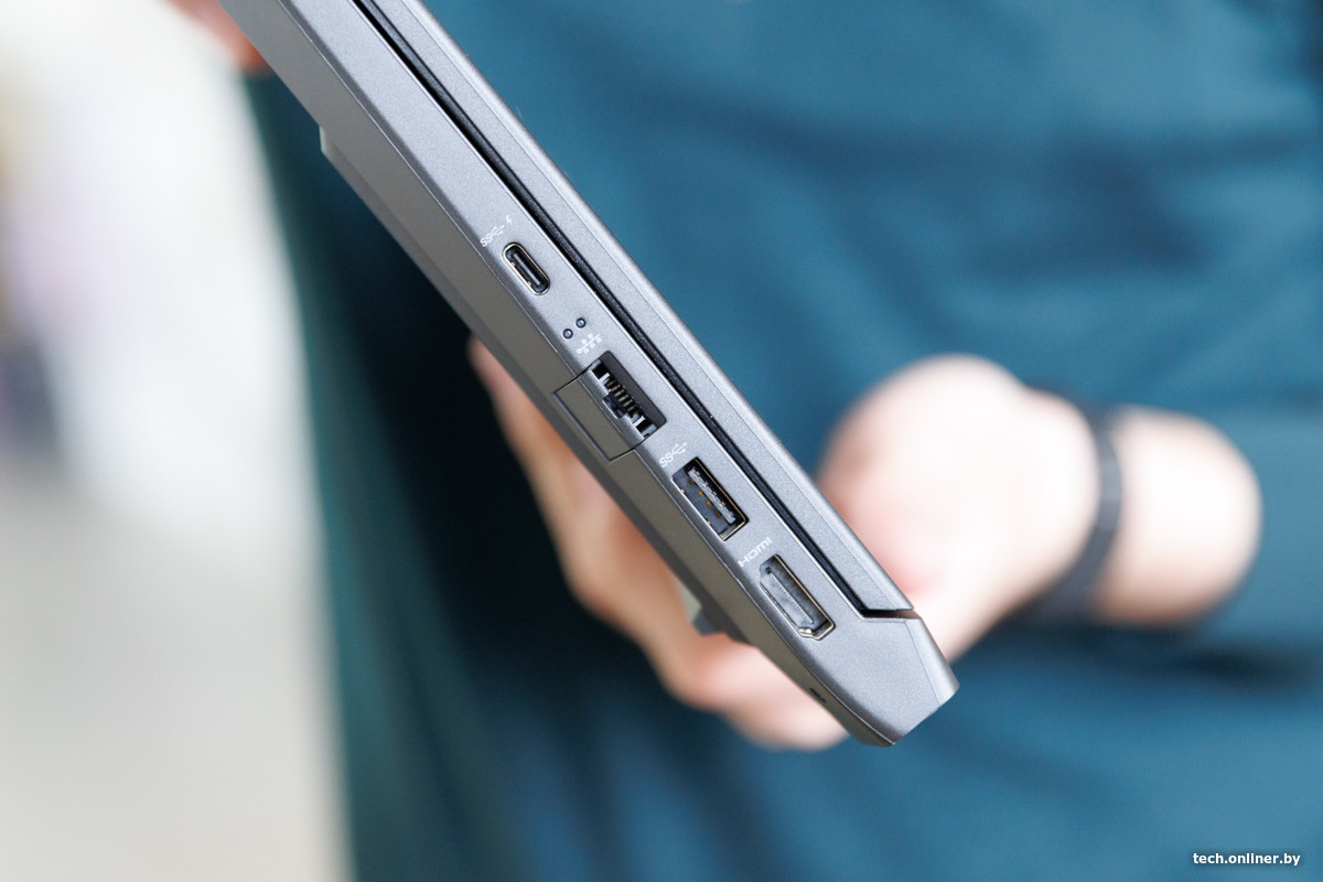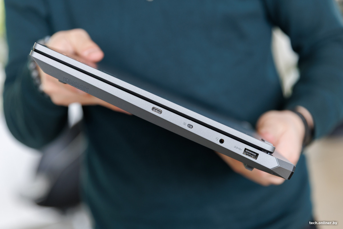 У Mechrevo набор уже поинтереснее: 3,5-мм-разъемы здесь разделены на вход для наушников и для микрофона, три USB Type-A (5 Гбит/с), один USB Type-C (5 Гбит/с), разъем для SD-карт, HDMI и mini DisplayPort, что говорит о возможности подключения нескольких мониторов без дополнительных переходников. Также присутствует кенсингтонский замок — не то чтобы в нем была какая-то необходимость, но мало ли кому пригодится.