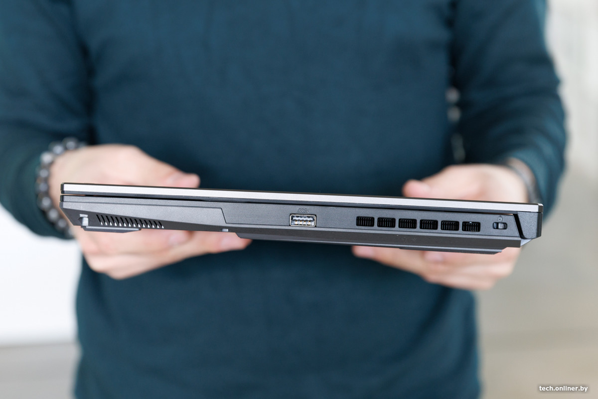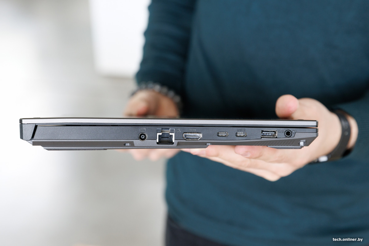 Казалось бы, может ли удивить четвертый по счету игровой ноутбук не топовой линейки в одной и той же ценовой категории? Как оказалось, может. У ASUS TUF Gaming F15 на борту два USB Type-A (5 Гбит/с), два USB Type-C (10 Гбит/с и 40 Гбит/с с поддержкой Thunderbolt 4, что обеспечивает возможность передачи изображения), комбинированный аудиовход/аудиовыход, кенсингтонский замок и HDMI. К ноутбуку также можно подключить одновременно два монитора без дополнительных переходников.