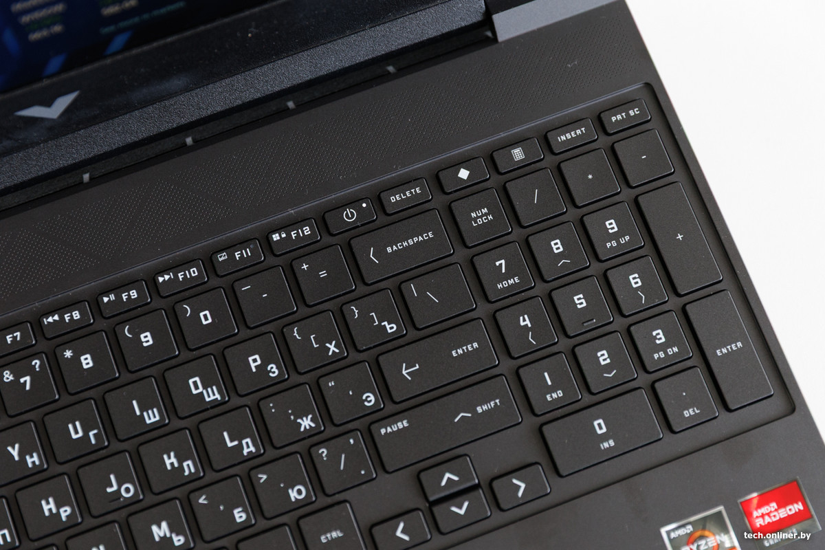 При первом знакомстве с HP Victus 15 я обратил внимание, что корпус дозакрывался с характерным щелчком защелок, хотя задняя крышка прикручена на винты. Чего не отнять — устройство красивое и не такое маркое, как ASUS TUF Gaming. Очень расстроил тачпад: отклик у него заторможенный, перемещается по рабочему столу курсор очень медленно и вальяжно.