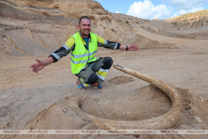 Рабочие на промышленном карьере «Шалыги» в Витебском районе обнаружили уникальную находку — бивень мамонта длиной 3 метра, возраст которого, предположительно, составляет около 20 000 лет. Бивень, вероятно, принадлежал взрослой и крупной особи — так считает историк Денис Юрчак, прокомментировавший находку для издания БЕЛТА.