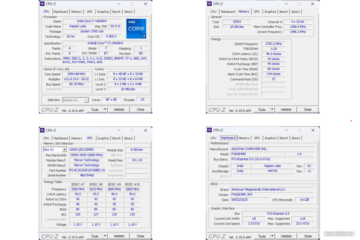 Intel Core i7 14650HX, установленный в ASUS TUF Gaming F16, также не является свежим чипом. Он построен на архитектуре двухлетней давности Raptor Lake-R, оснащен восемью производительными ядрами с поддержкой технологии Hyper-Threading и восемью экономичными ядрами.