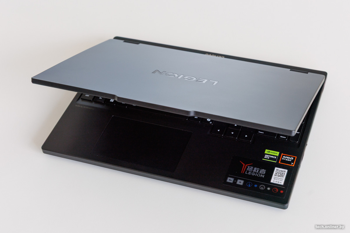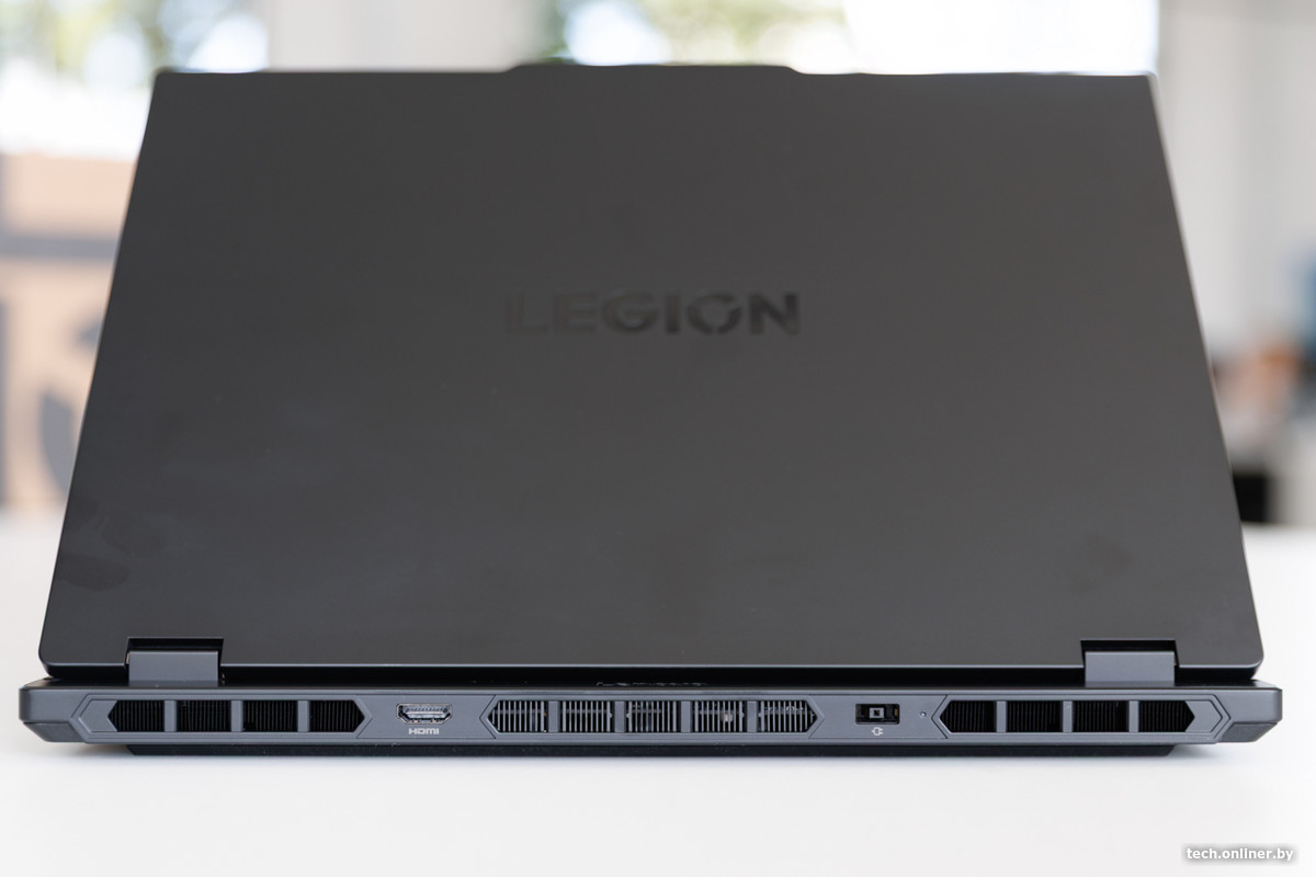 Изменения коснулись и задней крышки ноутбука. Если в прошлом поколении надпись Legion укромно располагалась в левом верхнем углу, то теперь она находится по центру — у окружающих не останется вопросов о том, к какой линейке ноутбуков относится ваше устройство.