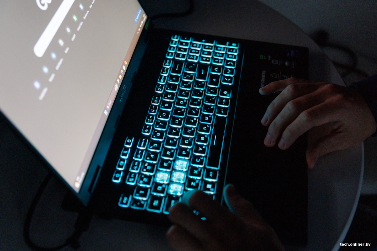 Однако клавиатура в ASUS TUF Gaming F16 нам показалась приятнее за счет более глубокого хода клавиш (1,7 мм) и ощущения упругости при нажатии. В играх такая реализация клавиатуры является наиболее предпочтительной. Стоит отметить, что в ASUS есть RGB-подсветка, в отличие от одноцветной подсветки Lenovo. С помощью фирменной утилиты AURA Creator можно не только регулировать статичный цвет, но и использовать динамические эффекты с разными сценариями переливов.