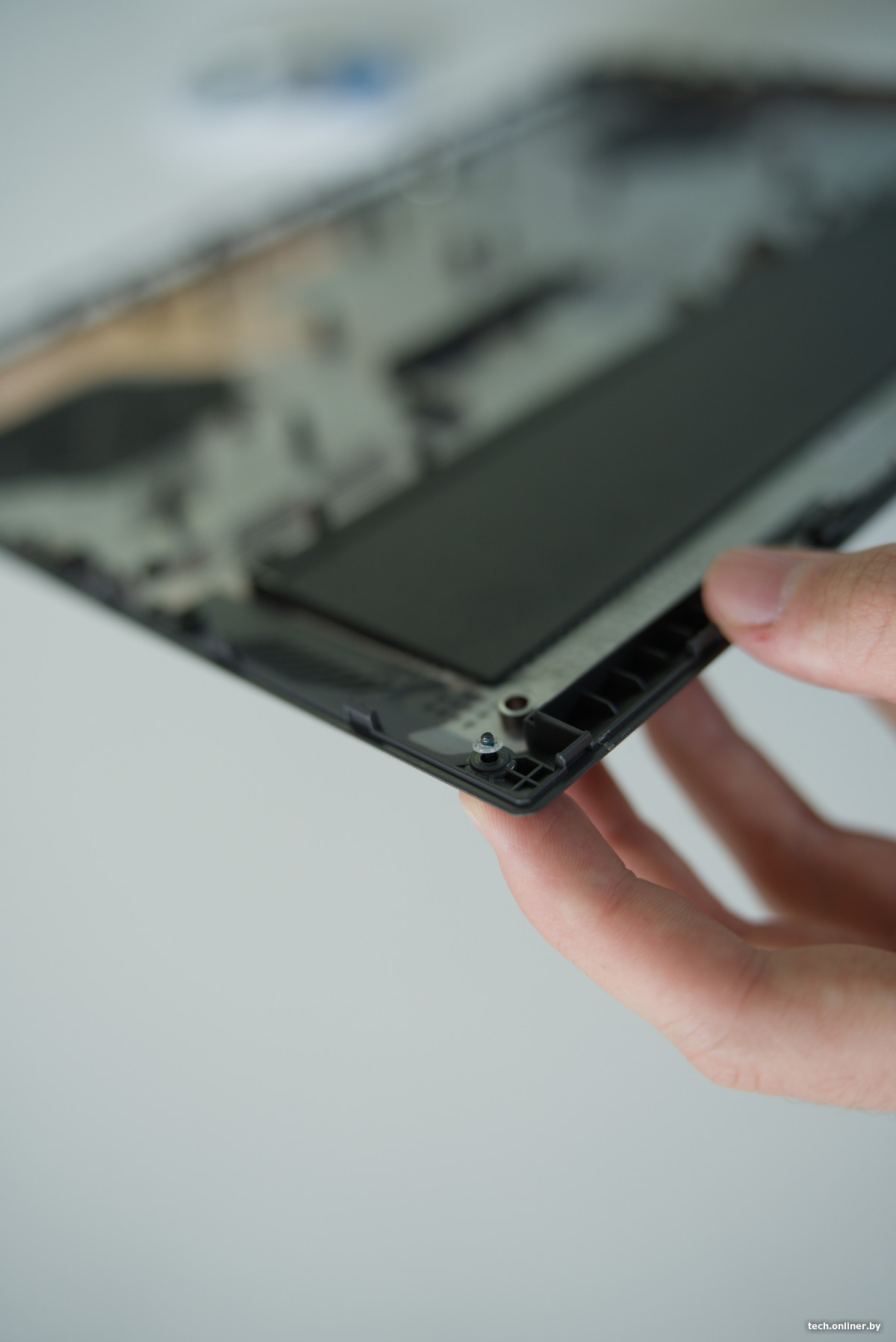 В ASUS TUF Gaming F16 производитель заранее позаботился об удобной разборке ноутбука. При откручивании одного из болтов нижняя крышка слегка приподнимается, что облегчает последующее открытие устройства.