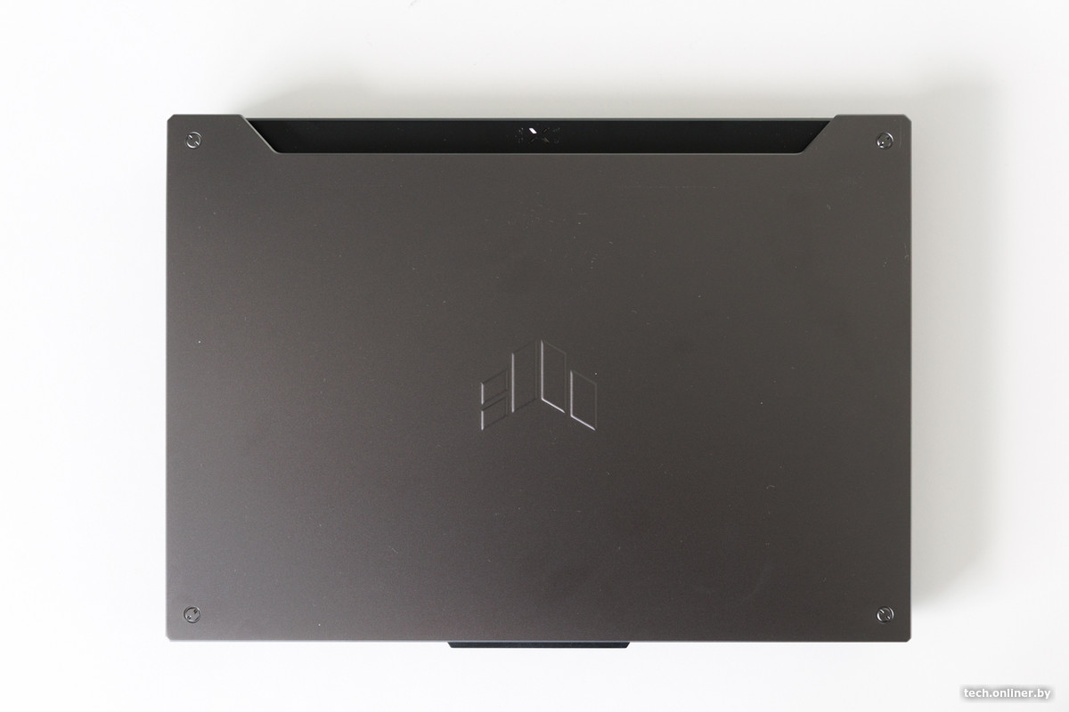 Впечатления от обновленного дизайна: устройство стало более сдержанным, и это пошло ему на пользу. Вместо вычурных декоративных вставок на крышке — еле заметная надпись TUF в углу. Исчез странный вырез между петлями экрана, из-за которого устройство выглядело «дырявым». Больше нет выступа над дисплеем — вместо этого в корпусе есть углубление под тачпадом для удобного открытия крышки.
