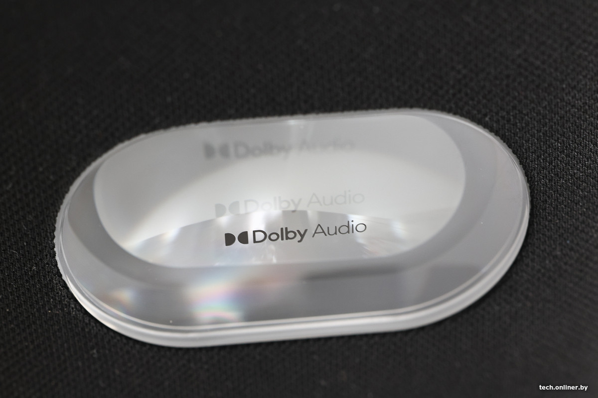 Верхняя площадка представляет собой пластину из барабанящего под пальцами материала, напоминающего пластик из вторсырья. Нет, это не выпад в сторону его качества, к которому вопросов нет, однако тактильно он ощущается и выглядит немного странно. Ближе к фронту на этой панели расположился блок сенсорных кнопок, которые видны при активной подсветке (чтобы активировать ее, нужно нажать где-то в ту область, они подсвечиваются и при включении). Пользоваться ими часто не придется, так как все функции выполняет пульт, просто его может, как обычно, не оказаться под рукой.