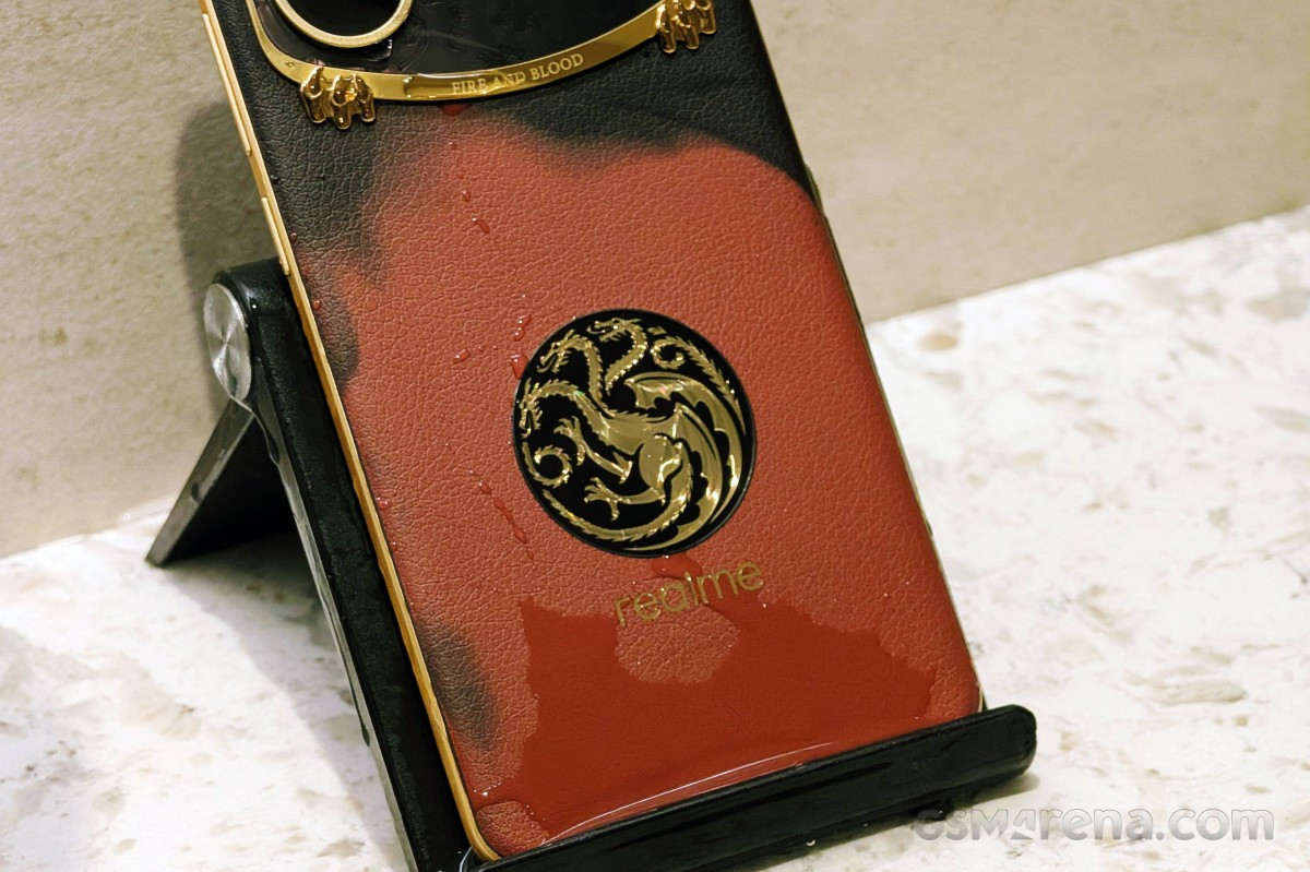 Вся эстетика Realme 15 Pro Game of Thrones Limited Edition вдохновлена визуалом сериала: золотой символ Таргариенов, а также камера и модуль, окруженные золотыми акцентами и когтями дракона. Задняя панель имеет дизайн, меняющий цвет с черного на темно-красный при температуре выше 44 градусов. Realme называет эту технологию «Рожденный в огне».