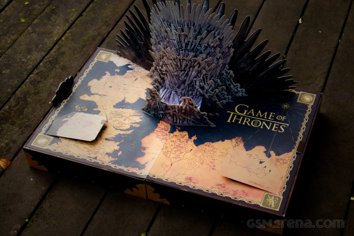 Смартфон поставляется в деревянной коробке, которая открывается как книга. При открытии коробки можно увидеть миниатюрную копию Железного трона, которая также служит подставкой для телефона. В комплекте имеется и изготовленный на заказ силиконовый чехол, наклейки и открытки с портретами главных героев сериала.