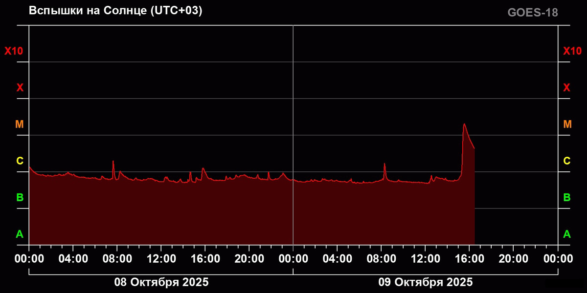 Там же дополняется: нынешняя вспышка — самая крупная с 30 сентября, когда ее класс определили как М2.7.