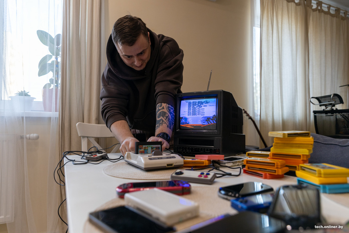 Большая ценность в том, что все девайсы рабочие, во все можно поиграть. Коллекционер достает картридж от Game Boy, чтобы продемонстрировать это, но игра не запускается с первого раза. Тогда Андрей совершает действие, которое вряд ли поймут молодые люди: резко и сильно дует на область контактов картриджа. Затем вставляет его в консоль — и игра запускается под аккомпанемент восьмибитной музыки. Все дело в пыли, которая оседает на контактах картриджа и нарушает соединение.