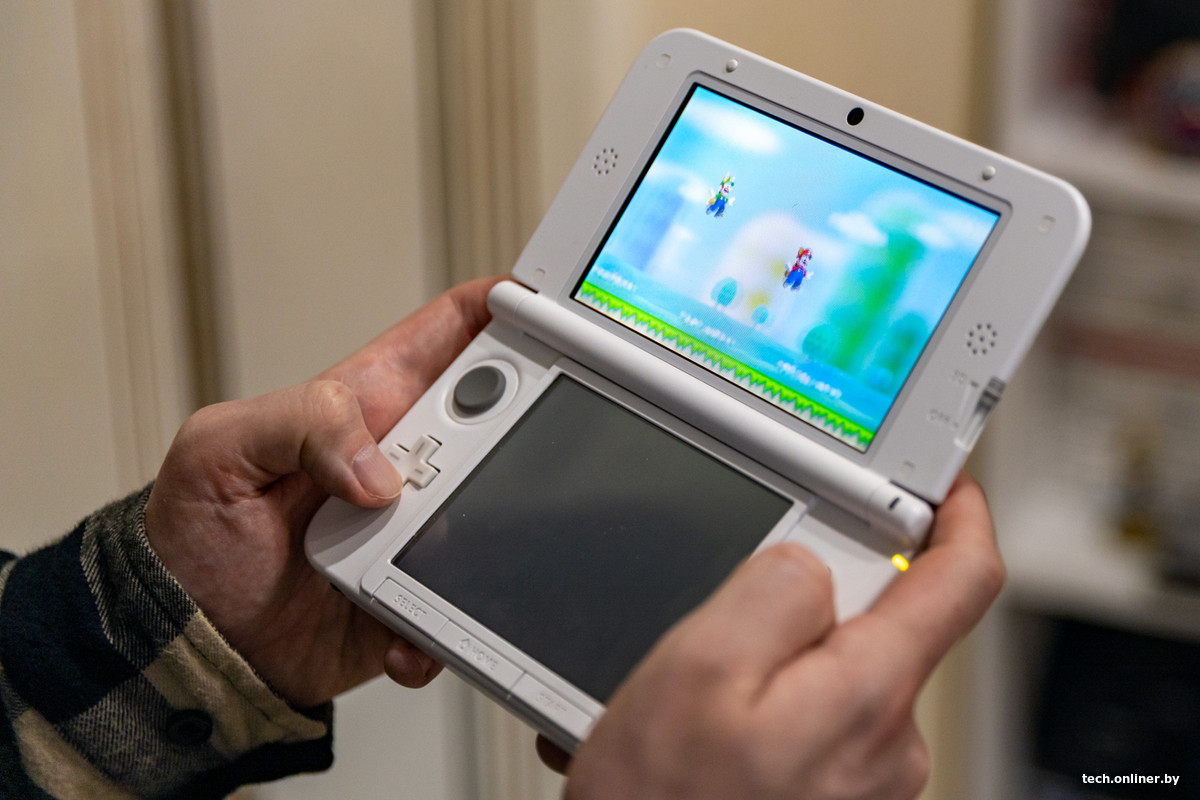 Андрей воодушевленно снимает еще одну консоль — Nintendo 3DS — и говорит, что такую мы точно не видели.
