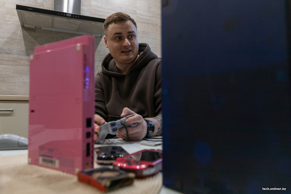 — Это та самая, квадратная, первая консоль, которую я увидел в компьютерном клубе в детстве. Я вспоминаю, как темным зимним вечером после школы играл на этом «пузатом» телевизоре, кайфовал… И сейчас, когда беру эту консоль, я проваливаюсь именно в то время, в детство. Особенно люблю доставать ее зимой, под Новый год — это просто магия, на самом деле.