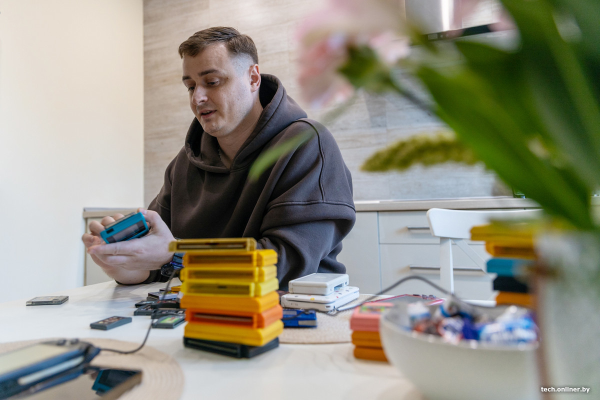 Примечательно, что коллекция приставок у Андрея — это не набор экспонатов, которыми нужно просто любоваться. Он все это использует — например, берет с собой в поездки некоторые портативные девайсы, чтобы поиграть в дороге. Для этого очень удобна самая маленькая консоль от Nintendo.