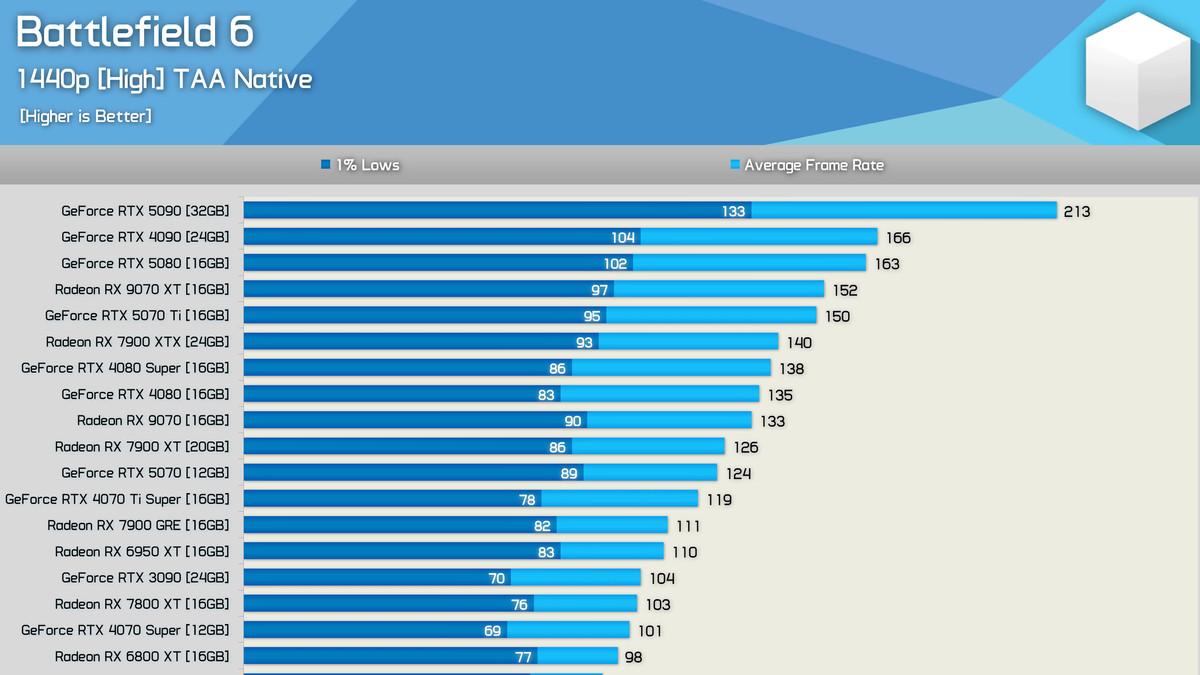 Если хочется получить больше кадров в FHD, но без лишних переплат, стоит обратить внимание на видеокарты серий Ti и XT. Например, RTX 5060 Ti 16GB обеспечивает в среднем около 131 fps в Battlefield 6 на высоких настройках.