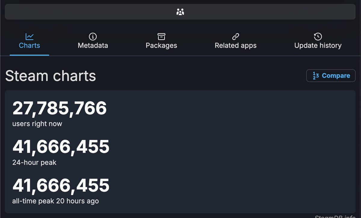 В воскресенье, 12 октября, в Steam находилось более 41,6 миллиона пользователей — таким образом платформа обновила свой максимальный «онлайн», ведь в играх одновременно было 13 миллионов юзеров.