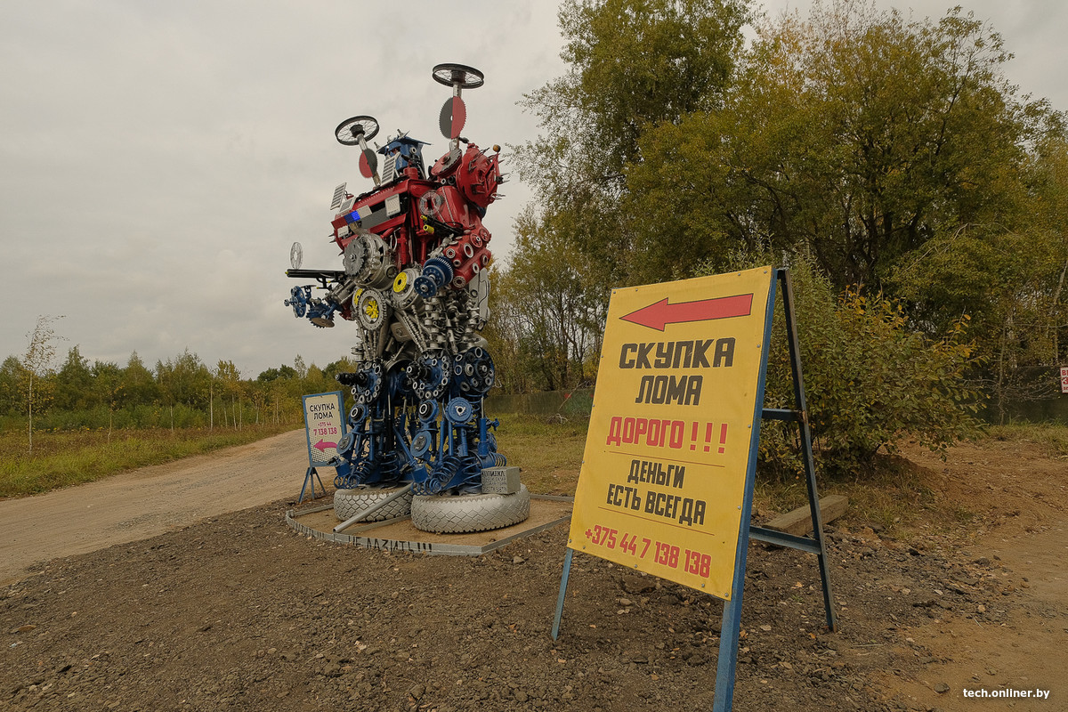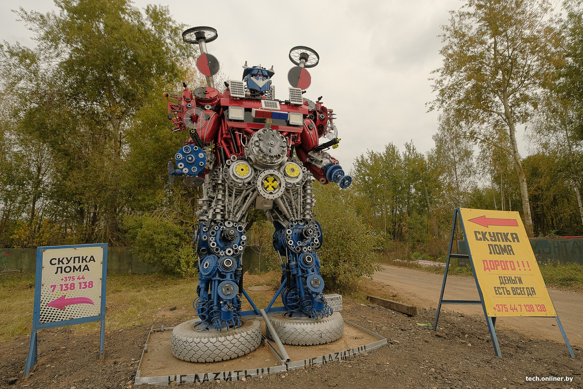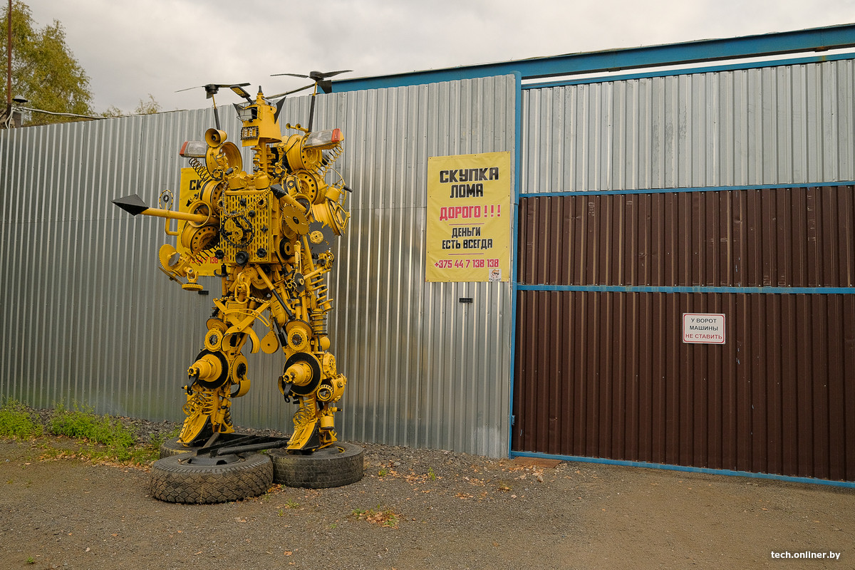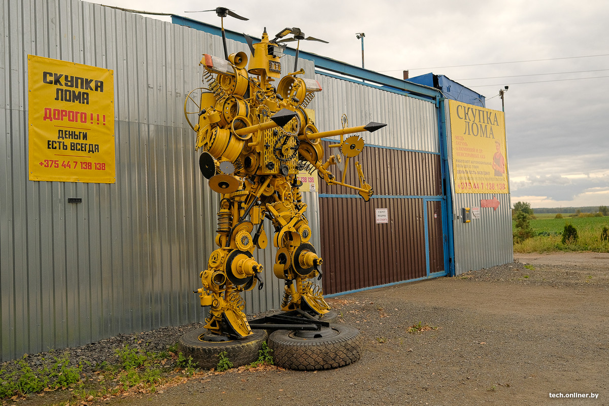 Можно ли превратить мусор в искусство? Простые рабочие из могилевского пункта приема металлолома доказали, что да. В порыве творчества из старых металлических запчастей мужчины создали трех гигантских роботов в стиле фильмов «Трансформеры» и установили их у своих баз. Экспонаты стали настоящими достопримечательностями — к ним регулярно приезжают посетители. Наведались в Могилев и мы, чтобы пообщаться с авторами и запечатлеть железных великанов.