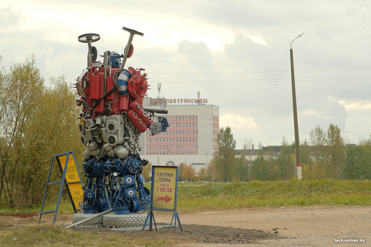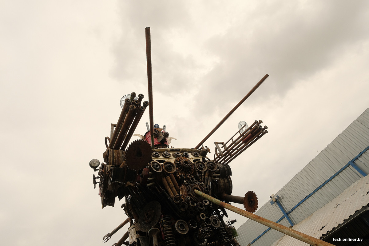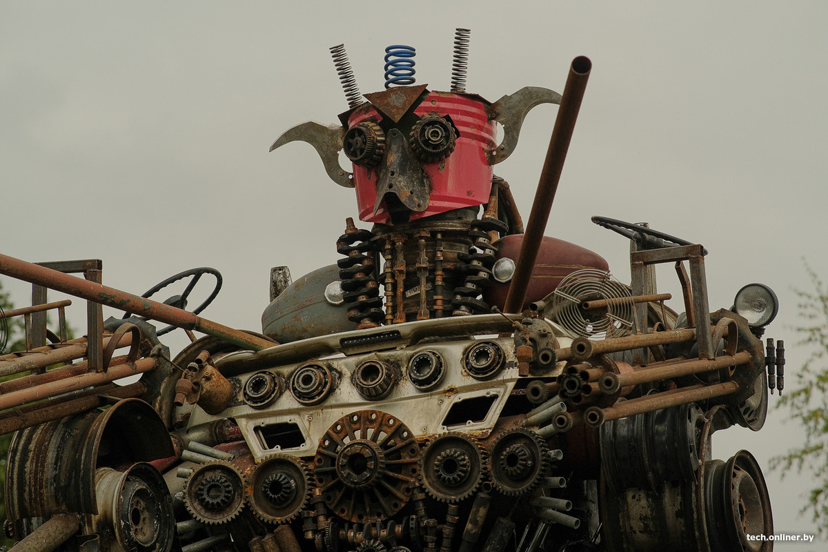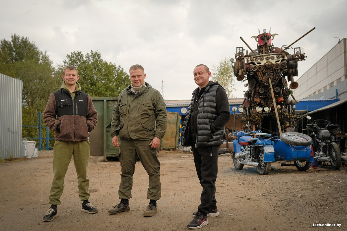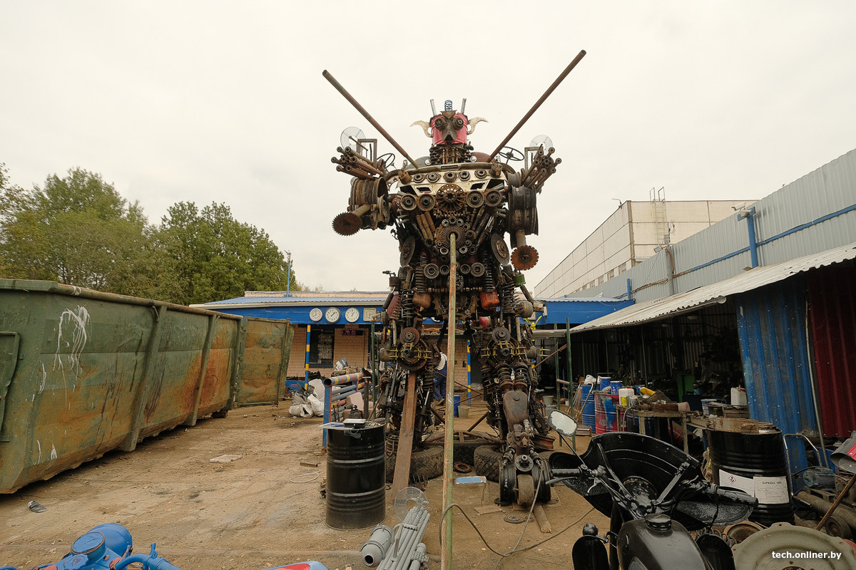 Можно ли превратить мусор в искусство? Простые рабочие из могилевского пункта приема металлолома доказали, что да. В порыве творчества из старых металлических запчастей мужчины создали трех гигантских роботов в стиле фильмов «Трансформеры» и установили их у своих баз. Экспонаты стали настоящими достопримечательностями — к ним регулярно приезжают посетители. Наведались в Могилев и мы, чтобы пообщаться с авторами и запечатлеть железных великанов.