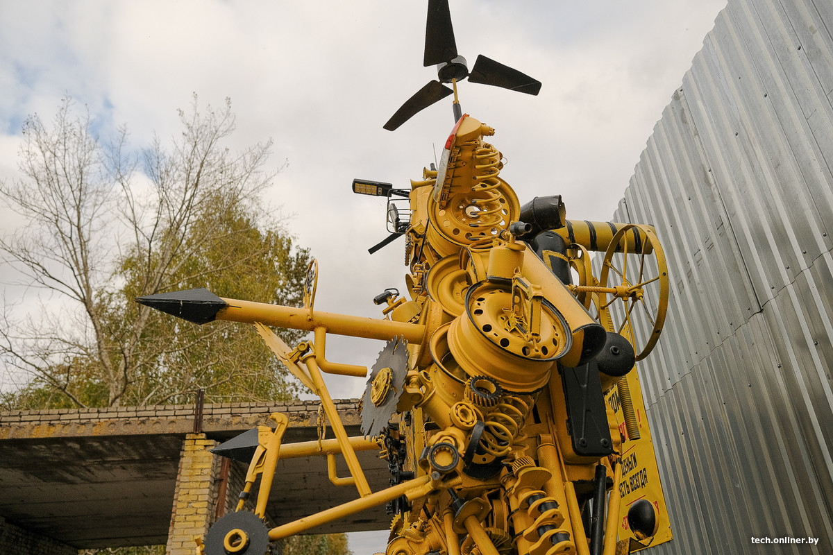 — Сделали каркас из металлических труб, а его уже обваривали разными деталями. То есть я прикладываю деталь к роботу — они приваривают. Когда вдохновение приходило, тогда и делали, — рассказывает Андрей.