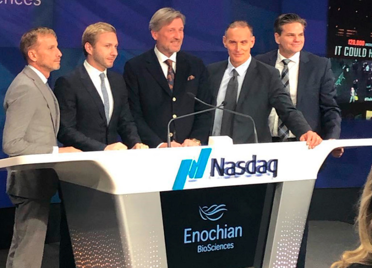 2018 год, стартап выходит на биржу. Второй слева — Серхат Гюмрукчу, третий — Рене Синдлев