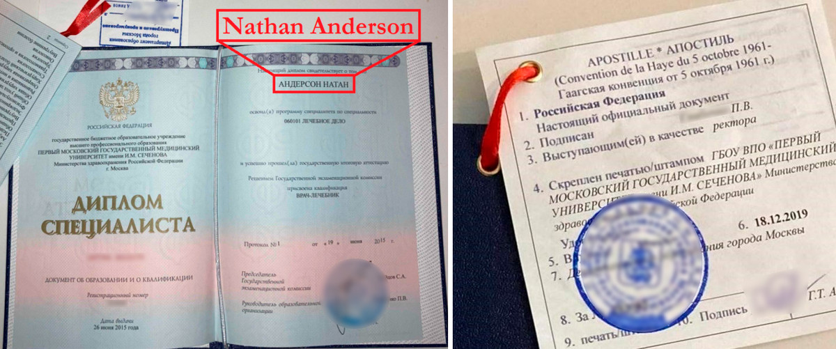 • Расследователи подтверждали в 2022 году то, что Гюмрукчу, вероятно, приобрел медицинский диплом российского вуза. Для проверки они попробовали купить на черном рынке идентичный документ — успешно. При этом никаких подтверждений тому, что мужчина получал медицинское образование или соответствующие лицензии в США, Турции или России, не нашлось. В Hindenburg Research предполагают, что за плечами «гения» — только средняя школа.